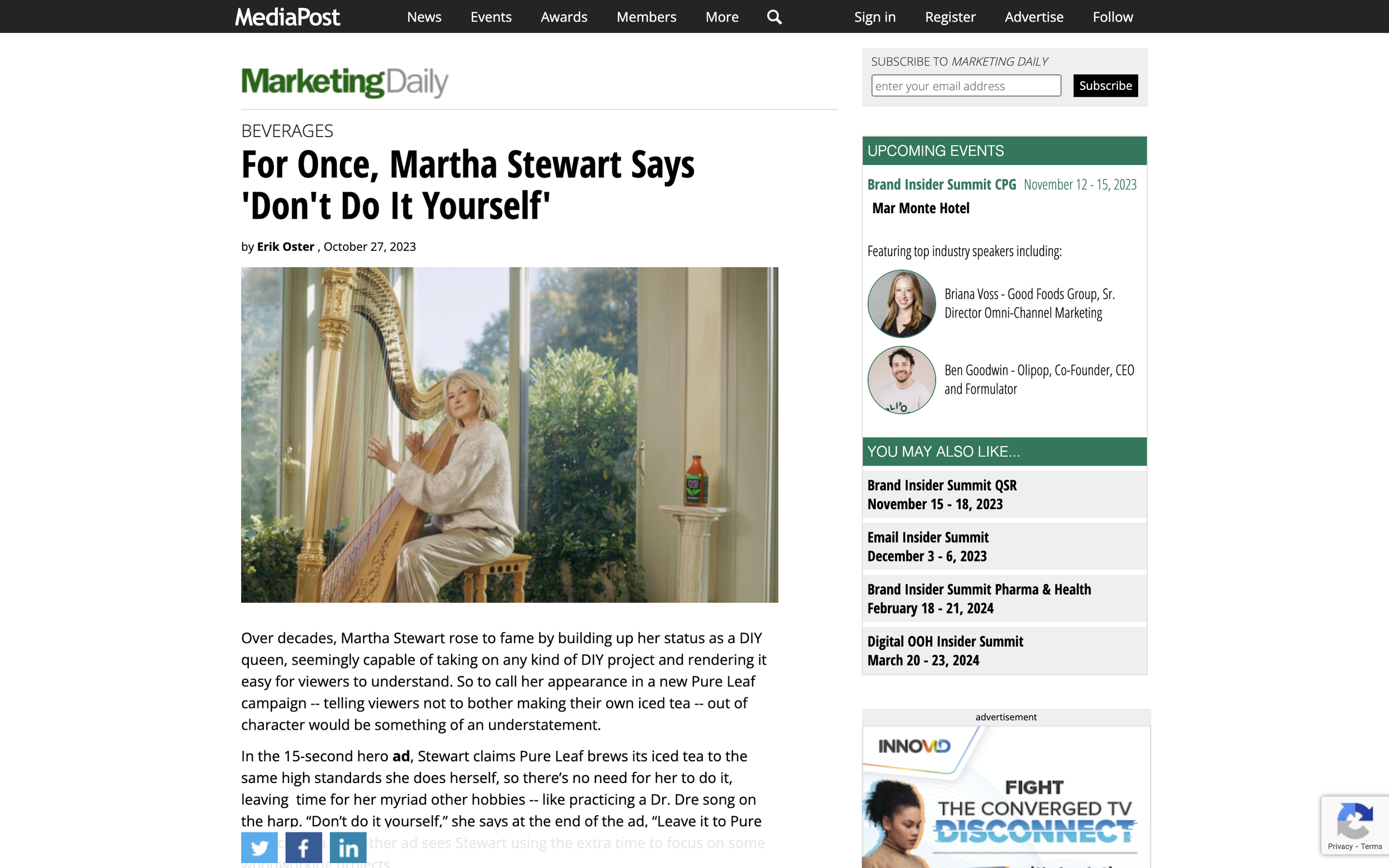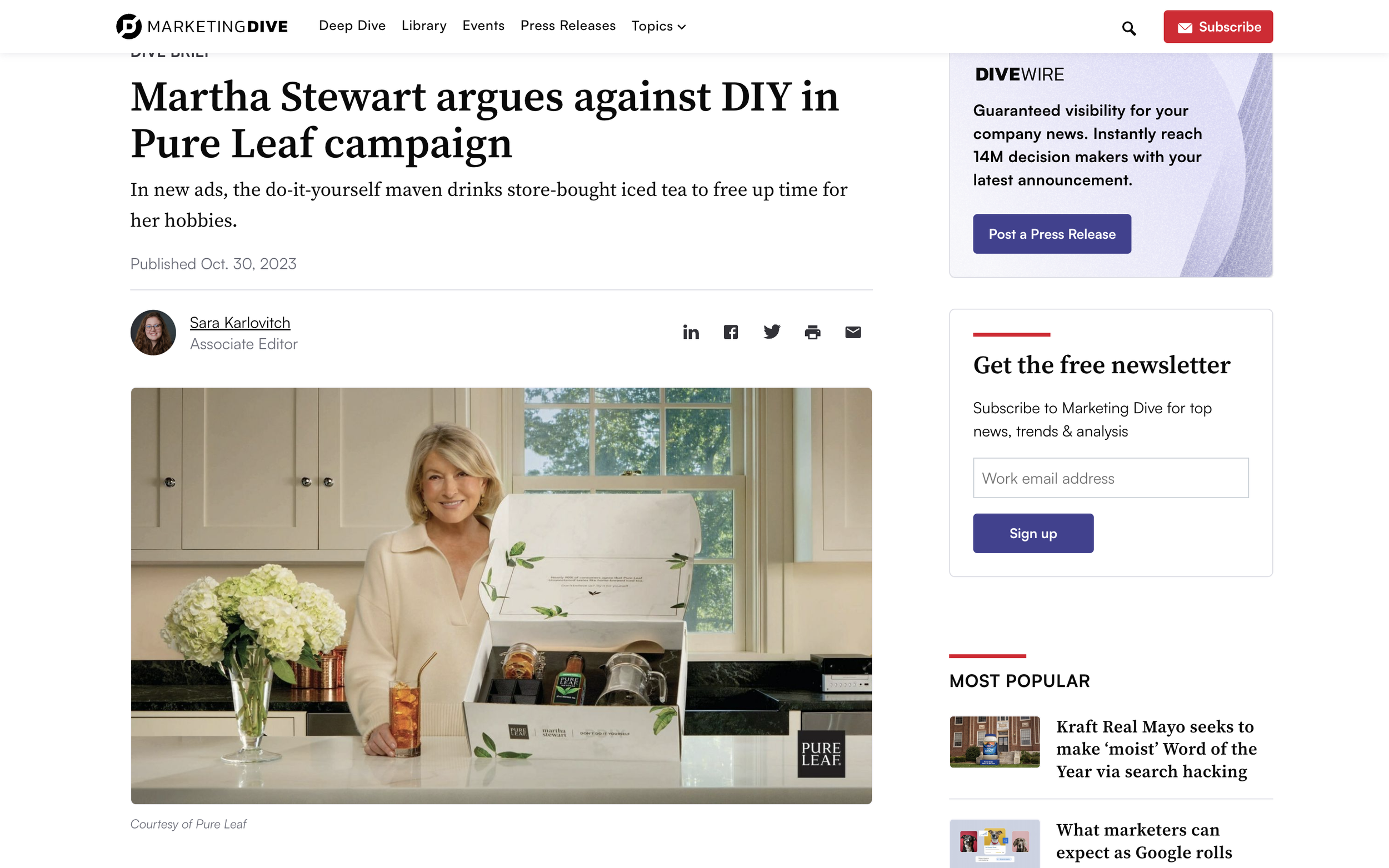 Why make your own tea when there's a ready-to-drink option so perfectly crafted, it convinced even the queen of DIY to stop steeping her own. That’s the simple premise behind this campaign from Pure Leaf. Even the Queen of DIY doesn’t need to make her own iced tea anymore.